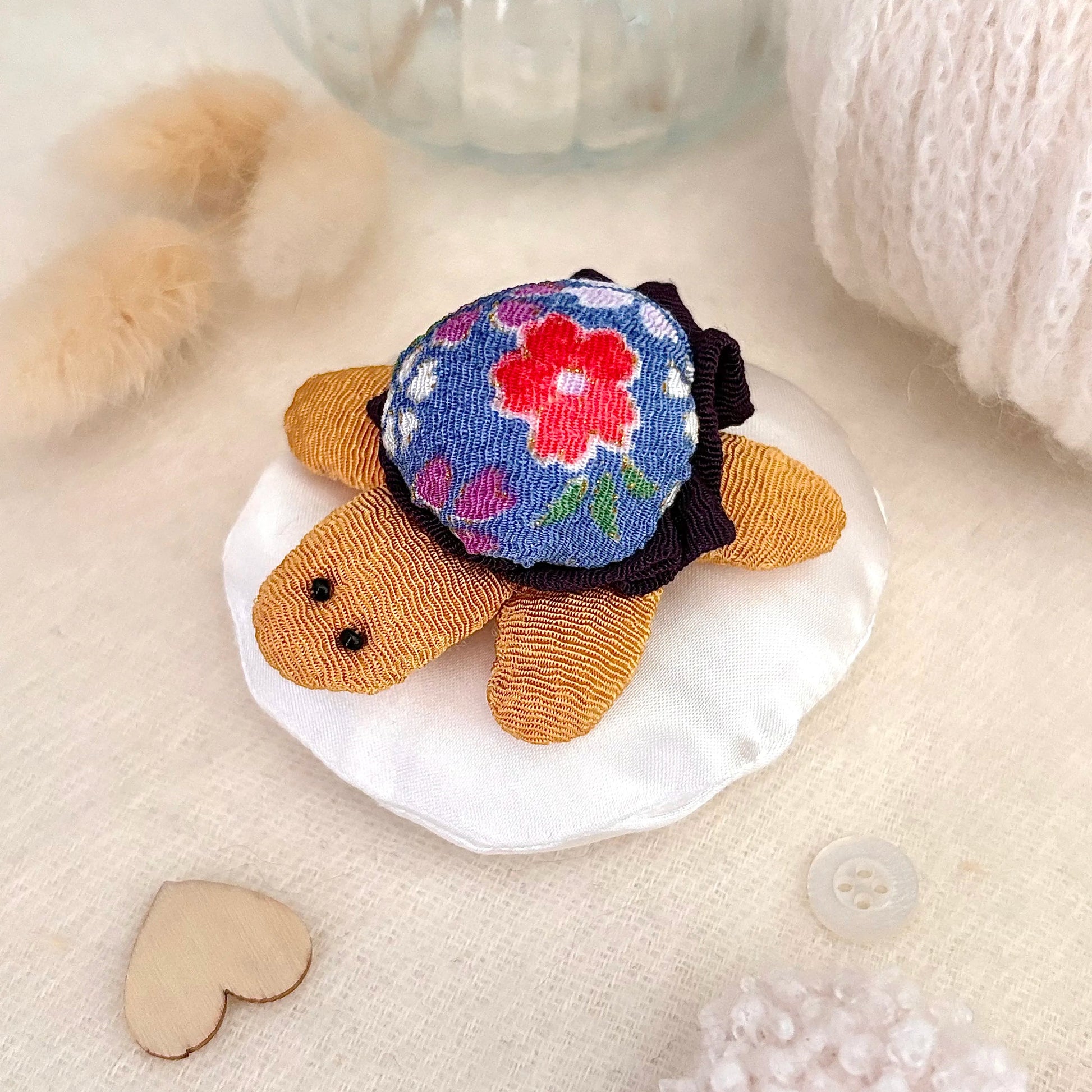 - Matières : la bina est en chirimen (tissu crêpe rayonne en provenance du Japon) et polyester, le coussin est en tissu crêpe envers satin et polyester