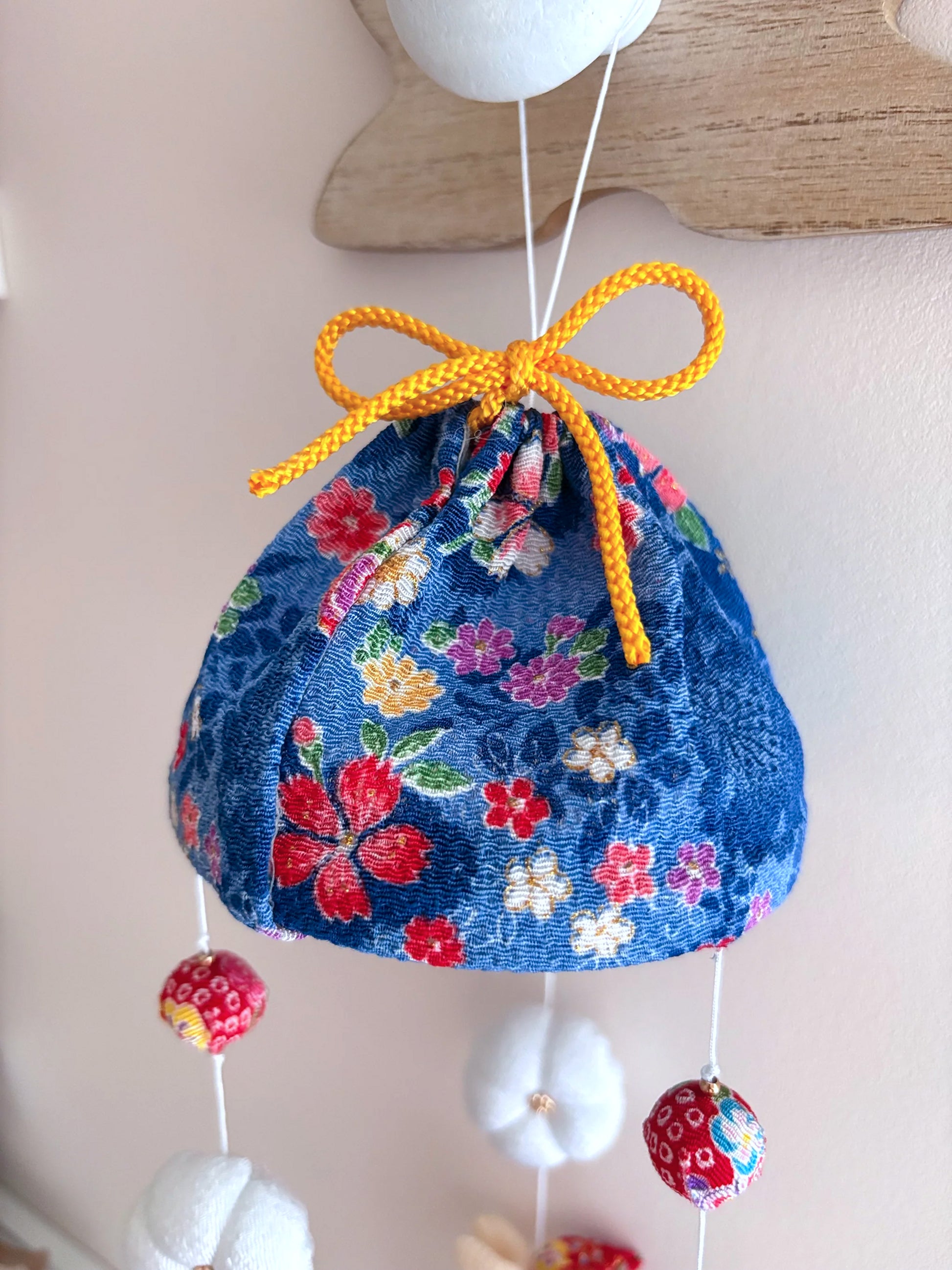 Le mobile "Eiko" à trois branches exprime des vœux pour une vie longue, heureuse et prospère pour le bébé, faisant de lui une décoration raffinée et pleine de vie dans la chambre. Les bina représentent aussi de belles qualités comme la gentillesse, le travail assidu et l'évolution.